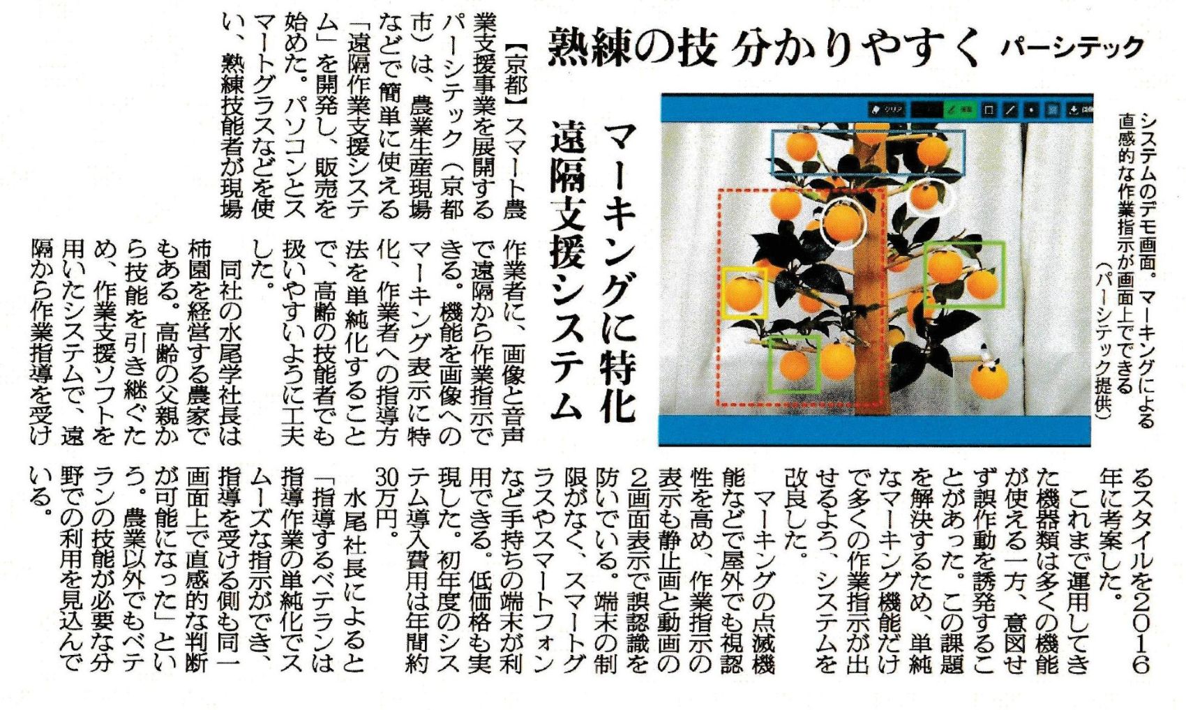 - 京都新聞『新時代に挑む』柿農園での遠隔作業の記事が掲載されました。